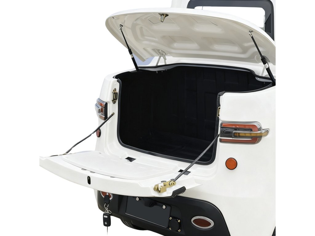 Der e-Pickup 25 in der Ausführung 1500 W / 80 Ah ist ein zuverlässiges, umweltfreundliches und praktisches Transportmittel, das den Komfort eines Autos und gleichzeitig einen hohen Nutzwert dank seines Kofferraums bietet. Er eignet sich für alltägliche Fahrten und kleinere Lasten und stellt eine erschwingliche Möglichkeit der Mobilität dar, ohne dass man sich um einen Führerschein kümmern muss.