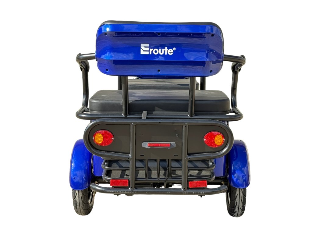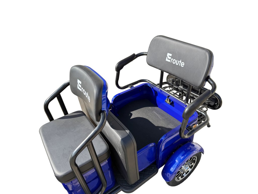 Das Eroute ST-07 Tech ist mit zwei Sitzreihen ausgestattet, die sowohl dem Fahrer als auch seinem Begleiter reichlich Platz bieten. Das Besondere ist die zweite Sitzreihe, die sich mühelos ausklappen und in einen komfortablen Laderaum verwandeln lässt. Egal, ob Sie Lebensmittel nach Hause bringen oder Schätze aus dem Garten holen, dieses Trike passt sich Ihren Bedürfnissen an.